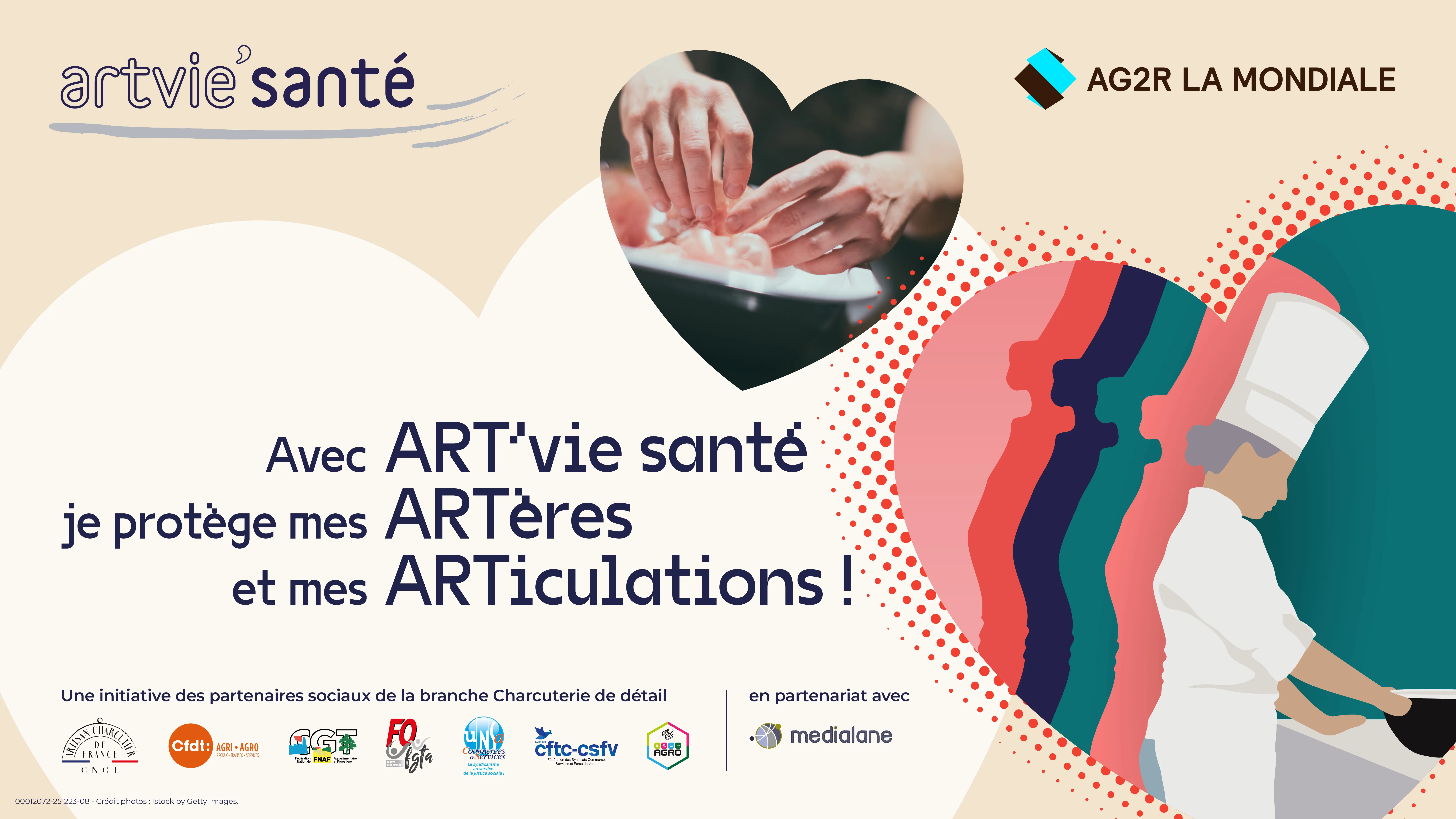 Votre profession s’engage pour protéger votre santé avec ART’Vie Santé : répondez à quelques questions et bénéficiez de l’accompagnement adapté à votre profil : sommeil, alimentation, stress, douleur chronique
